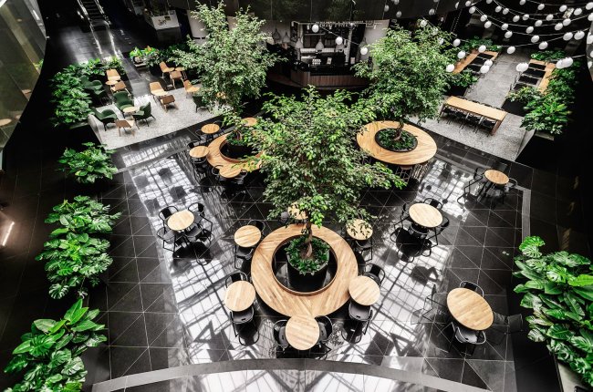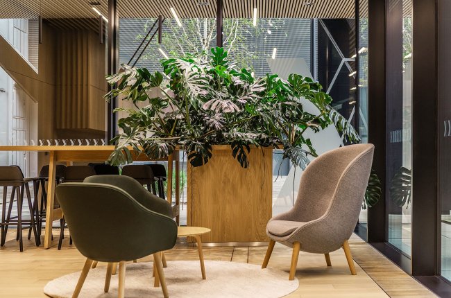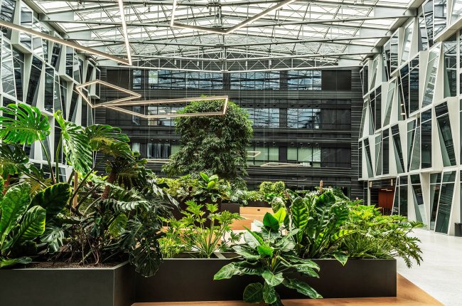W zakresie upiększania wnętrz zielenią, oprócz zdobień i nasadzeń roślinnych o charakterze czysto dekoracyjnym zpecjalizujemy się w nasadzaniu roślin wysokich w holach i korytarzach budynków oraz tworzeniem "zielonych ścian".